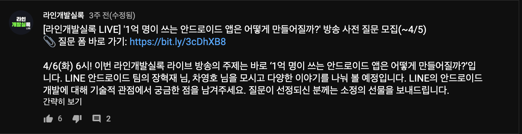 사전에 채널 커뮤니티 게시판에 '1억 명이 쓰는 안드로이드 앱은 어떻게 만들어질까?' 주제에 대한 사전 질문을 모집하는 글을 확인하고, 실무 개발자로서 비동기 처리는 어떻게 진행하는지가 궁금했다.