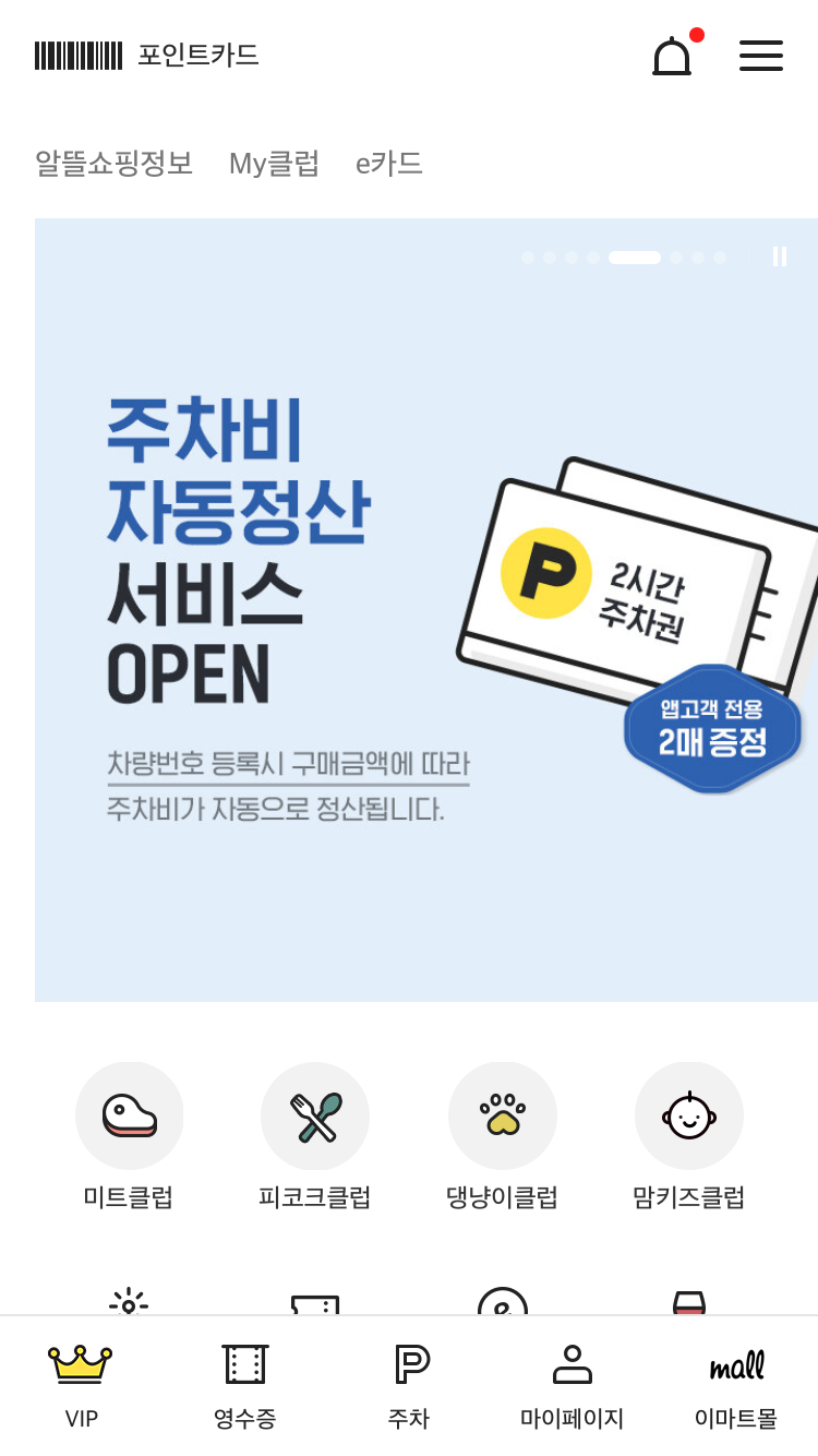 우선, 이마트몰 앱에서 회원가입/로그인 이후 메인 페이지로 이동한다.
