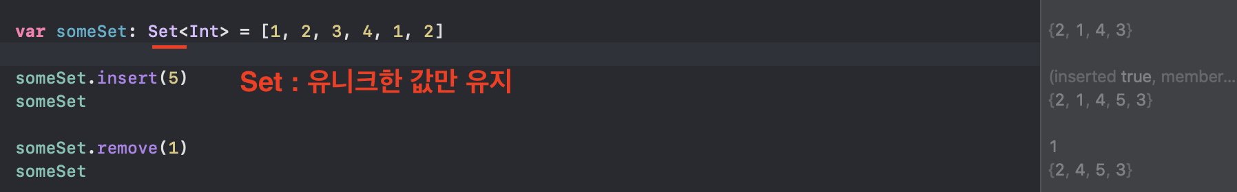 * Set : 중복이 없는 유니크한 아이템을 담을 때 사용