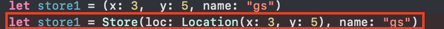 let store1 = Store(loc: Location(x: 3, y: 5), name: "gs")