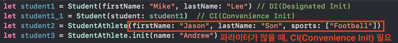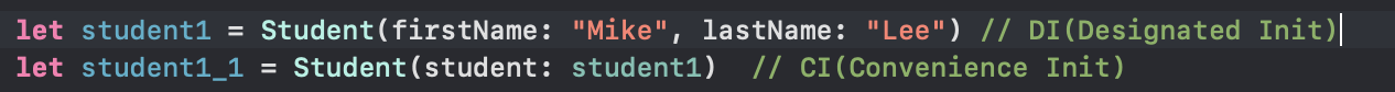 - CI는 같은 클래스의 이니셜라이저를 꼭 하나 호출해야 함