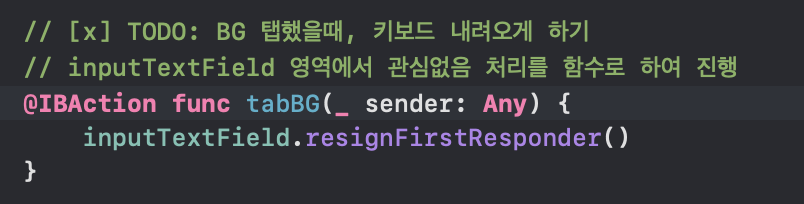 : 텍스트필드의 현재 상태를 포기했다는 의미 (키보드가 자동으로 내려가는 효과)