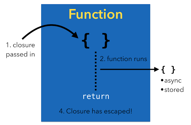 클로저(Closure)가 함수의 인자로 전달되고 함수 외부에서 실행될 때 함수를 탈출(escape)하는 클로저라고 합니다. 이 클로저는 함수가 반환된 후에 호출됩니다. 함수의 매개변수 타입 앞에 @escaping을 작성하여 해당 클로저가 함수를 탈출할 수 있음을 나타냅니다. (간단 버전)