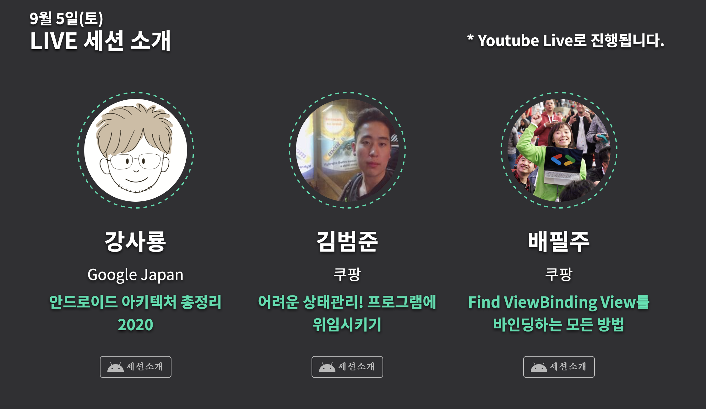 첫 번째 세션은 강사룡 님의 "안드로이드 아키텍처 총정리 2020"