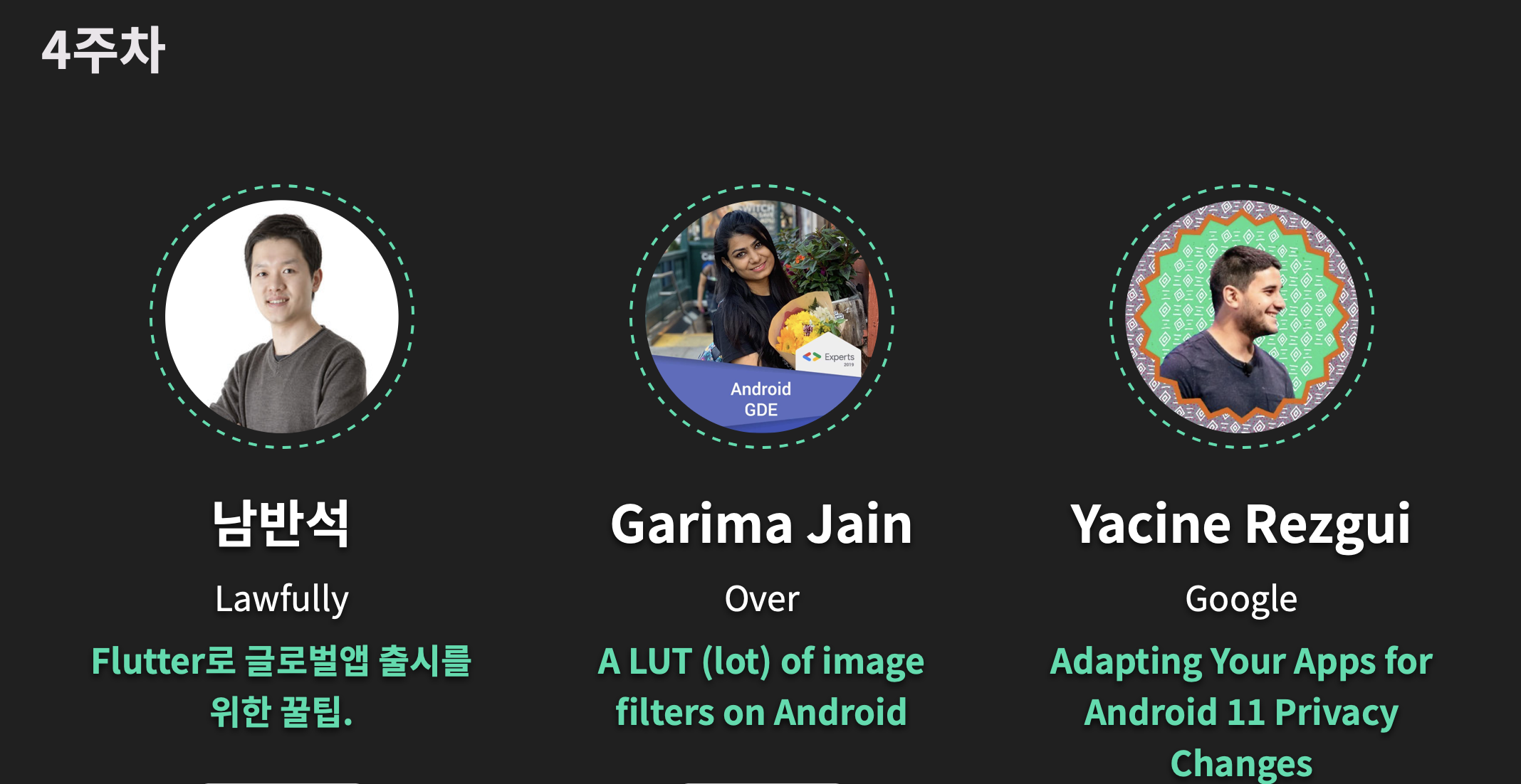 드로이드 나이츠 2020은 9월 한 달간 진행되며, 1/2/3/4 주차별로 세션이 준비되어 있다.