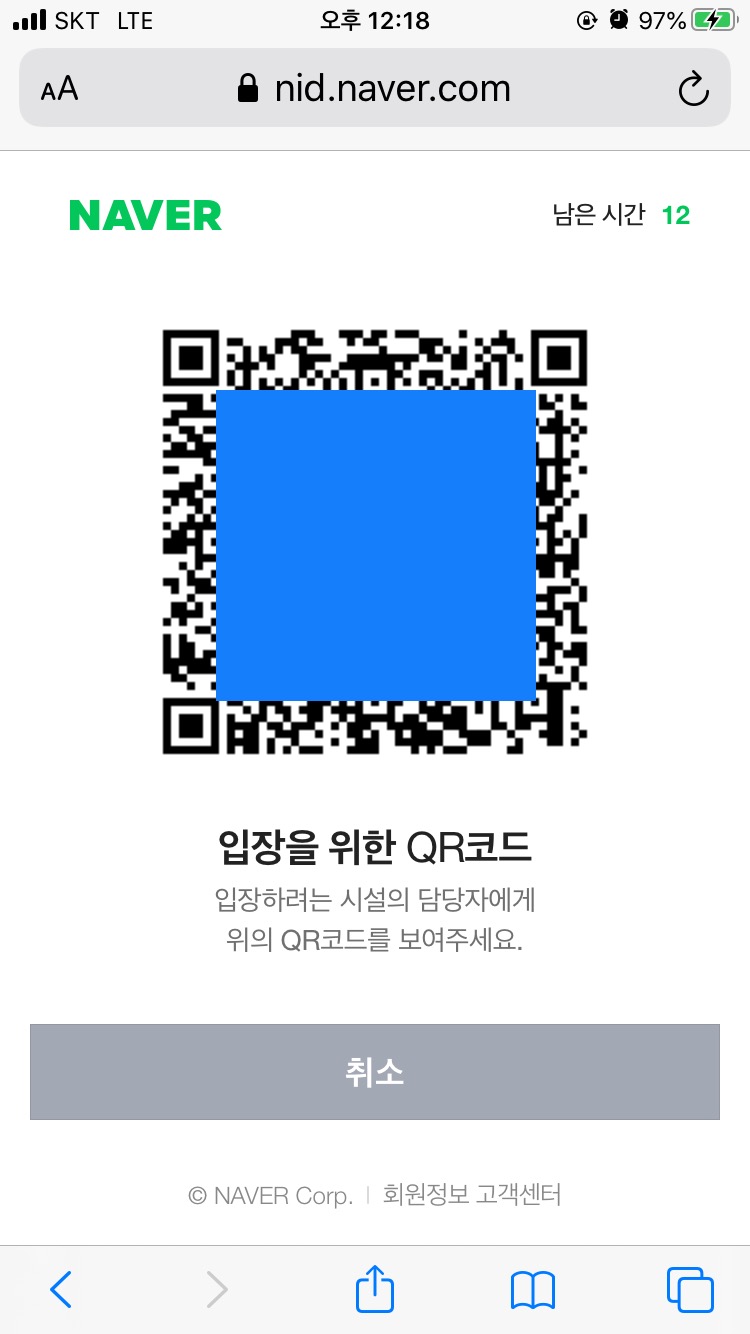 QR코드가 발생하면, 인증해야 할 단말기 카메라에 알맞게 인식되도록 위치조정만 잘하시면 됩니다.