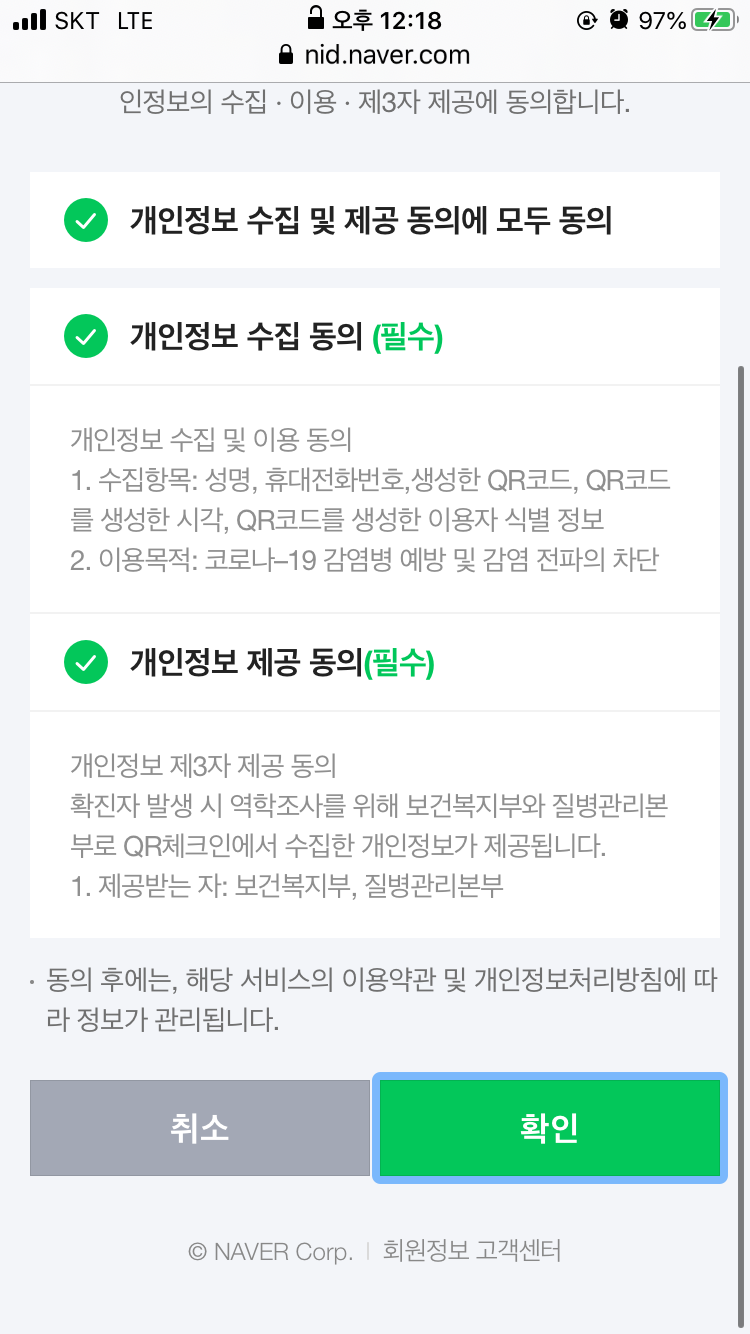 이러한 불편한 방법의 대안으로 ‘네이버 앱’에서 QR코드로 본인인증이 가능합니다.